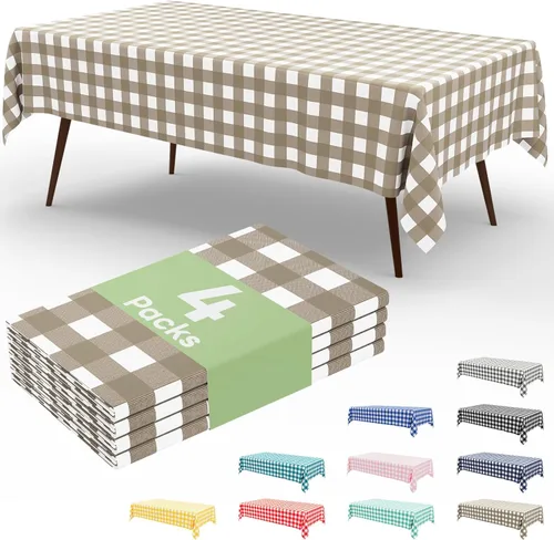 misaya Paquete de 4 manteles desechables de búfalo, mantel de plástico impermeable de 54 x 72 pulgadas, manteles rectangulares a cuadros caqui y