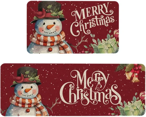 Mloabuc® Juego de 2 alfombrillas de cocina de Navidad, antifatiga, impermeables, resistentes a las manchas, alfombra roja de muñeco de nieve de