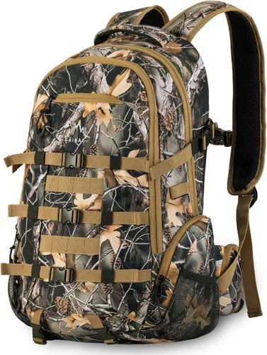 Duradero y sigiloso: fabricado con tela 600D duradera, que está diseñada para resistir pinchazos y ruido, asegurando que permanezcas sin ser detectado en el bosque. El patrón de camuflaje proporciona un camuflaje óptimo durante la caza, permitiéndote mezclarte perfectamente con tu entorno 【Dos opciones de capacidad】La capacidad de 35 L es la opción perfecta para cazadores que requieren espacio de almacenamiento adicional. Con su mayor capacidad, proporciona espacio adicional para transportar equipo más voluminoso, capas de ropa adicionales y provisiones para expediciones de caza más largas. La capacidad de 35L asegura que tengas todo lo que necesitas para períodos prolongados en el campo. Tamaño: 12.6" * 9.84" * 20.87" Diseño ergonómico: cinturón ajustable y correa de esternón garantizan una distribución adecuada del peso y capacidades óptimas de carga, minimizando la tensión en tu espalda y hombros. La mochila está acolchada para proporcionar amortiguación y apoyo, reduciendo la fatiga y las molestias durante largas caminatas o períodos prolongados de uso Diseño único: nuestras mochilas tienen un sistema de transporte de armas integrado que puede almacenar de forma segura tu rifle, arco u otro equipo de caza. Este diseño único garantiza que puedas acceder fácilmente a tu arma mientras liberas tus manos para completar otras tareas. Vale la pena mencionar que nuestras bolsas de caza también tienen cubiertas de lluvia integradas para proteger tu equipo de las inclemencias del tiempo 【Versátil y Duradera】 Nuestra mochila de caza no solo es adecuada para la caza, sino que también sirve como un excelente compañero para aventuras de senderismo y campamento. Su diseño versátil y construcción duradera lo convierten en una opción confiable para transportar equipo esencial y equipamiento de campamento en varios escenarios al aire libre