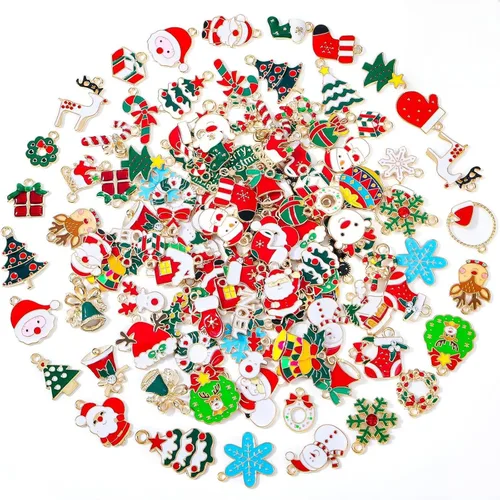 Modacraft - 120 piezas de dijes navideños para la fabricación de joyas, múltiples estilos de dijes esmaltados en oro con Santa, copo de nieve, árbol