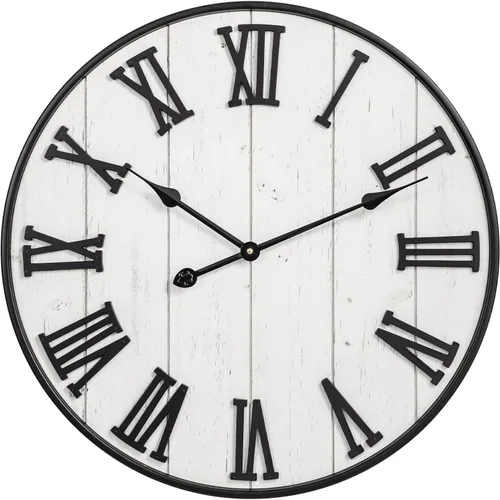 Esfera blanca lavada de 24 pulgadas con números romanos negros.
