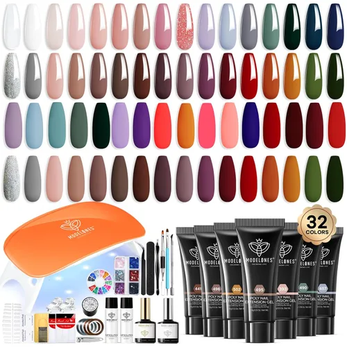 Modelones Kit de poligel de uñas con potente lámpara de curado de 48 W, 2 poligeles de uñas, 6 colores nude, suministros de arte de uñas para