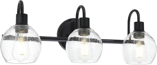 Modernas Bombillas de Luz de Tocador de 3 Luces en Negro, Iluminación de Baño de Granja de Metal con Globo de Vidrio Semiesférico para Pasillo,