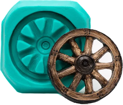 La rueda de carro hecha de molde mide 2 y 7/8 pulgadas de diámetro x 3/8 de pulgada de grosor. Consulta la segunda imagen para obtener una referencia visual del tamaño. Yo personalmente hago cada molde en los Estados Unidos, poniendo cuidado y atención en cada detalle. Como artesano de pequeñas empresas, me enorgullece crear moldes flexibles de alta calidad que hacen que sus proyectos de chocolate, fondant, dulces, manualidades y arte sean realmente especiales. Molde de silicona flexible, perfecto para resina, uretano, arcilla, arcilla metálica y otros materiales moldeables. Molde de silicona apto para alimentos, perfecto para chocolate, fondant, dulces, decoración de pasteles y mucho más. El color del molde puede ser verde o rosa, dependiendo de la disponibilidad de materia prima, pero la calidad, el detalle y la flexibilidad de la silicona siguen siendo los mismos. La muestra de la rueda de carro no está incluida.