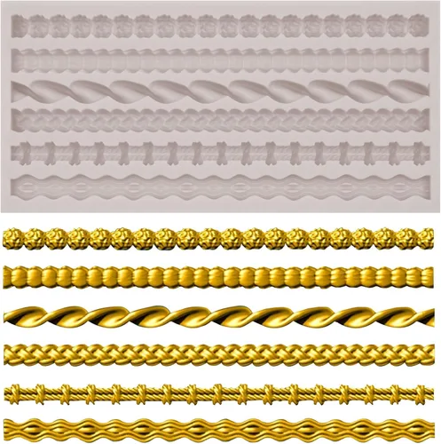 Moldes de silicona de cuerda trenzada, moldes de silicona para bordes de pastel de perlas, patrón de espiral ondulada, cuerda de cáñamo, moldes para