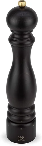 Molino de pimienta icónico: el molinillo de pimienta Paris u'Select de color chocolate mejora los sabores de las comidas que creas. Molienda precisa y uniforme son las palabras clave de este emblemático molino de Peugeot. Diseñado y fabricado en Francia U'SELECT SETTINGS - Nuestro sistema patentado te ayuda a seleccionar la molienda deseada. Gira para crear tu equilibrio preciso de sabor a través de seis ajustes, desde extra fino hasta muy grueso. El mecanismo de molienda de dos etapas primero agrieta sin esfuerzo y luego muele los granos de pimienta hasta la textura deseada MOLIENDA DE PRECISIÓN — A través de dos siglos de experiencia, hemos diseñado expertamente cada molinillo de pimienta y mecanismo específicamente para la consistencia y forma de los granos de pimienta. Hacemos los engranajes de acero inoxidable que están acabados con un tratamiento patentado para evitar la corrosión y el óxido Mejora el sabor: el mecanismo u'Select resalta toda la profundidad aromática de la pimienta seleccionando la molienda adecuada para tu gusto. La pimienta muy finamente molida sacará su especia, mientras que una molienda más gruesa resaltará sus aromas y sabor. Encuentra tu momento Peugeot y disfruta del arte de la vida francesa con nuestros instrumentos de gusto LISTO PARA CONDIMENTAR — La pimienta está disponible para comprar en Peugeot de 6 oz. Cubos de (175 g). Para rellenar, simplemente desenrosca el pomo superior, quita la parte superior y vierte tus granos de pimienta (tamaño máximo de ¼ de pulgada/6 mm)