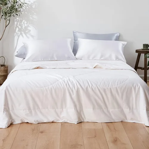 Mommesilk Edredón de seda con funda de algodón, relleno de seda natural pura y larga, para todas las estaciones, tamaño matrimonial, 76 x 87
