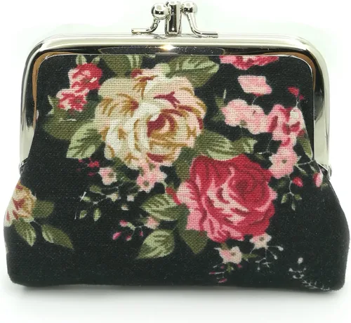 Monedero con adorable diseño floral y hebilla, bolso vintage de cierre suave