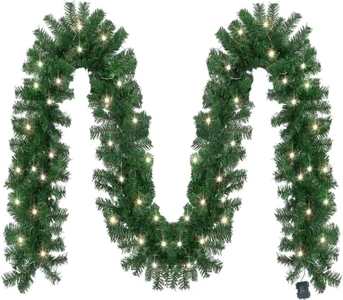 Guirnalda de Navidad: la guirnalda de Navidad de MorTime cuenta con puntas gruesas y realistas de ramas que miden 17.7 pies de largo y casi 7 pulgadas de ancho. Es una excelente manera de crear un ambiente de vacaciones de invierno. Guirnalda verde LED preiluminada: la guirnalda de Navidad iluminada creará noches de Navidad cálidas, felices e inolvidables. La guirnalda artificial es hermosa durante el día y encantadora por la noche. Funciona con 3 pilas AA (no incluidas) Fantástico diseño: la guirnalda de Navidad artificial de MorTime tiene ramas ajustables que se pueden doblar y dar forma. Se sugiere que pases unos minutos para que la guirnalda se vea mejor. Amplia aplicación: la guirnalda de Navidad LED de MorTime se puede aplicar para decorar tus paredes, puertas, ventanas, repisas de chimenea, etc. La guirnalda artificial combina bien con la mayoría de los estilos de decoración y es una fabulosa adición a la celebración de la fiesta de Navidad. Aspecto realista: utilizamos colores verdes vibrantes y puntas de ramas idiosincrásicamente elaboradas para hacer que la guirnalda de Navidad de MorTime se vea ultra realista. El atractivo natural realista y convincente está destinado a llamar la atención de las personas y sorprenderlas. Resaltará cualquier espacio de tu hogar.