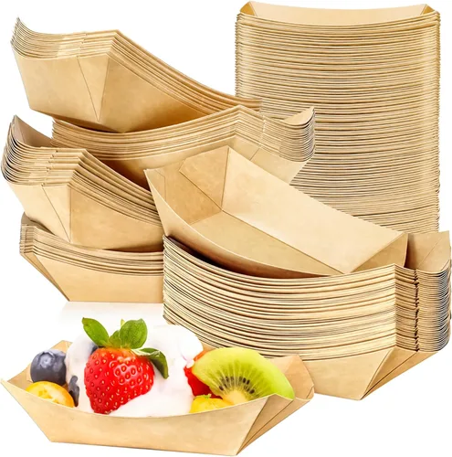 Material de calidad: hecho de material de papel kraft de grado alimenticio de alta calidad, resistente y duradero, confiable de usar, alternativa ideal a las bandejas de plástico y espuma. Cantidad suficiente para usos diarios y de fiesta, te permite compartir deliciosa comida con tus amigos y familiares, soporte ideal para nachoes Tamaño: la capacidad máxima de estas pequeñas bandejas de papel para alimentos es de 1/2 lb. El tamaño de cada bandeja de papel para alimentos es de 5.2 x 3.1 x 1.5 pulgadas, pequeñas y fáciles de transportar. POR FAVOR, confirma si el tamaño de la bandeja satisface tus necesidades antes de comprar Resistente a la grasa: El interior de las bandejas de papel para nachos cuenta con un revestimiento de película de polietileno de grado alimenticio, que tiene un gran rendimiento en resistencia al agua y a la grasa, conveniente y fácil de usar, no hay necesidad de preocuparse por que la salsa se derrame o se filtre, mantén tus manos y ropa libres de desorden Suministro de fiesta ideal: Estas bandejas de papel para alimentos son reciclables y desechables. Suministros de fiesta ideales para ti, añade fácilmente salsas, salsas para mojar y condimentos por su apertura superior. No más preocupaciones por lavar los platos, úsalos una vez y tíralo, haciendo que la limpieza después de un picnic o fiesta sea fácil y sin complicaciones Uso amplio: estas bandejas de papel para alimentos son adecuadas para servir papas fritas, palomitas de maíz, nachos, tacos, pan, barbacoa, pasteles pequeños, postres, dulces, etc. Ideal para puestos de comida, restaurantes, cines, tiendas, supermercados, Navidad, Halloween, boda, cumpleaños, evento, picnic, fiesta, cafetería, etc