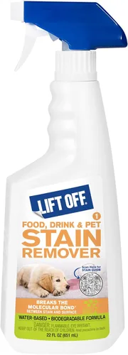 La fórmula patentada a base de agua de Lift Off es biodegradable y contiene bajos compuestos orgánicos volátiles por lo que es seguro de usar en tu hogar, en una variedad de superficies y para el medio ambiente. Eliminación de manchas sin preocupaciones: elimina rápida y eficazmente las manchas de vino tinto, café, chocolate, hierba, grasa y aceite, suciedad de mascotas y otras manchas de alimentos, bebidas y mascotas. Lift Off rompe la unión entre la mancha y la superficie sin causar daños. Estás quitando la mancha, no enmascarándola. CONVENIENTE PARA FAMILIAS OCUPADAS: Haz la vida más fácil usando un producto para varios tipos de manchas. Elimina las manchas de aventuras familiares, manchas de comida de la cena o manchas de mascotas de ese nuevo cachorro corriendo. Funciona en múltiples superficies: el removedor de manchas de alimentos, bebidas y mascotas de Lift Off es seguro de usar en alfombras, muebles de interior y exterior, ropa de cama y telas, incluido el interior de tu automóvil. Ideal para casa o en la oficina. Fabricado con orgullo en los Estados Unidos: Lift Off está formulado, fabricado y distribuido en los Estados Unidos. Utilizamos ingredientes superiores para ofrecer un rendimiento y fiabilidad inigualables en los que puede confiar. Estamos comprometidos con tu satisfacción. Si algo no cumple con tus expectativas, ponte en contacto con nosotros y lo arreglaremos!