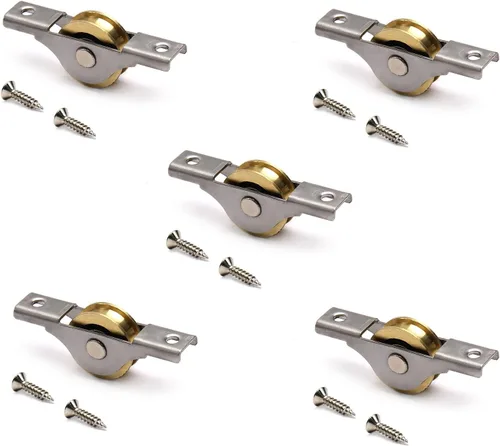 MroMax Polea de ventana de puerta de 1.024 in de diámetro, galvanoplastia de cobre, polea de ventana de puerta corredera de una sola rueda con