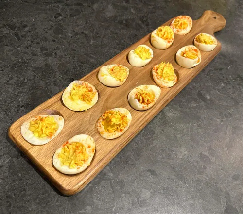 Práctica y elegante bandeja para huevos diabólicos: eleva tus reuniones sociales con la bandeja de huevos diabólicos de Mrs. M's Floral Cart Store, diseñada por expertos para contener una docena de huevos rellenos con gracia. Además de servir huevos, este plato rectangular aerodinámico, que mide un generoso 48 × 12 × 0.7 in, es la solución elegante definitiva para todas tus necesidades de entretenimiento. Uso versátil: transforma tu experiencia gastronómica con nuestra bandeja de huevos diabólicos. Más que solo un soporte, sirve como un plato para servir multiusos, ideal para embutidos, platos de queso e incluso como tabla de cortar. Ideal para cenas diarias o grandes festividades, es la mejor actualización que tu mesa necesita. Alta calidad y duradero: nuestro plato para servir está diseñado con madera de acacia resistente. La construcción robusta garantiza un brillo duradero, solo requiere un simple lavado a mano y pulido ocasional para mantener su aspecto fresco. Perfecto para cada ocasión, garantiza dejar una impresión duradera en sus invitados. Favorito festivo: esta sofisticada tabla de embutidos es la pieza central esencial para todas las ocasiones. Ya sea fiestas de cumpleaños, fiestas de Pascua, cenas de Acción de Gracias o celebraciones de Navidad, esta bandeja infunde elegancia a tu unta. Mejora tu experiencia de servir con estilo con nuestra práctica pero elegante bandeja. Regalo perfecto para los entusiastas de la comida: el Fancy Panz de Mrs. M's Floral Cart Store es una opción de regalo ideal ya sea comprando para un amigo entusiasta o un cocinero casero. Con su practicidad, versatilidad y diseño impresionante, seguramente deleitará a cualquier persona que ama cocinar y entretener, aportando alegría a sus experiencias de cocina y comedor.