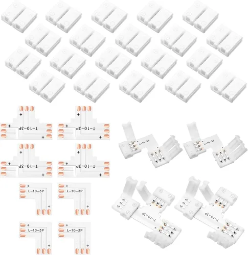 | Piezas incluidas | 20 piezas de conectores LED de 3 pines, 4 piezas de conectores RGB en forma de L, 4 piezas de conectores de luz adaptador LED en forma de T |