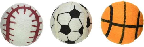 Tres pelotas de tenis de 2.5 pulgadas que se asemejan a una pelota de baloncesto, béisbol y fútbol. Ideal para buscar y jugar.