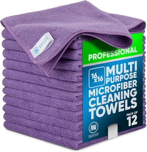 MW Pro - Paño de limpieza de microfibra | Morado | Paquete de 12 | 16 x 16 pulgadas | Toallas de microfibra multiusos – Limpias, polvo, pulido,