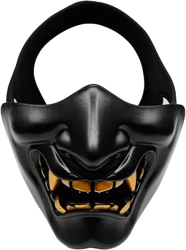 NC Evil Demon Monster Kabuki Samurai Prajna Ghost Half Mask, Halloween, Airsoft Half Mask for Cs War Game, 16cm x 13cm