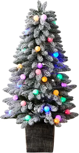 Ver Árboles de Navidad Ir al inicio mIANearly Natural Árbol de Navidad artificial preiluminado de invierno de 4 pies con 40 luces LED y 259 ramas flexibles en maceta decorativa con cloruro de polivinilo Hierro