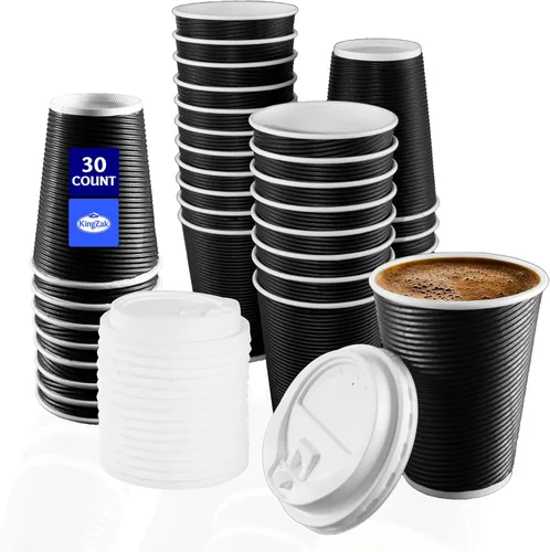 Nicole Home Collection Vasos desechables de papel ondulado de doble pared con tapas para bebidas calientes, paquete de 30 tazas de café, 16 onzas,