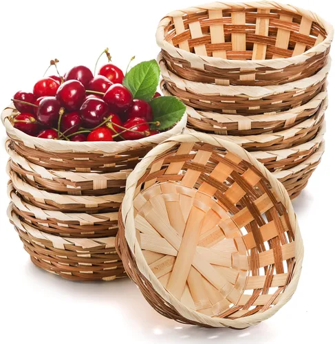 La cesta de frutas pequeña está hecha de bambú tejido a mano, sin recubrimiento, sin productos químicos, duradero y seguro. Es más seguro y saludable para almacenar alimentos. Fácil de limpiar limpiando con un paño húmedo. Nuestra cesta de pan tejida está hecha a mano, por lo que cada una es única. Con un diseño tejido, que permite que el aire pase a través para garantizar la transpirabilidad y sin olor. Ideal para frutas, verduras, pan, pasteles, magdalenas, servir alimentos, almacenamiento o exhibición. El paquete incluye 12 cestas tejidas redondas, medidas 7 x 7 x 2.5 pulgadas. Apilable y no ocupa demasiado espacio. También se puede utilizar para organizar tus llaves, jabones, juguetes, cartera, toallas, teléfono celular, etc. El aspecto rústico le da un toque de naturaleza y rústico, se adapta bien a la decoración de cualquier habitación. Ideal para colocar en la cocina de casa, mesa de comedor, oficina, tienda de frutas, supermercado, restaurantes, picnics al aire libre y mucho más. Perfecto para el uso diario y se puede utilizar como decoración elegante para fiestas y celebraciones. Ideal para crear cestas de regalo para inauguración de la casa, Pascua, Navidad, boda, día de la madre, etc. NOTA: Confirme el tamaño antes de comprar