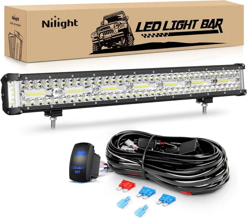 Nilight Barra de luz LED de disparo lateral de 20 pulgadas, triple fila, luces combinadas de inundación, iluminación de trabajo con interruptor