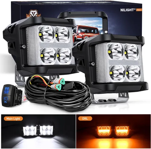 Nilight Side Shooter - Cápsulas de luz LED con DRL ámbar de 4 pulgadas, 26 W, combo de foco y luz de inundación, cubos de luz LED con kit de
