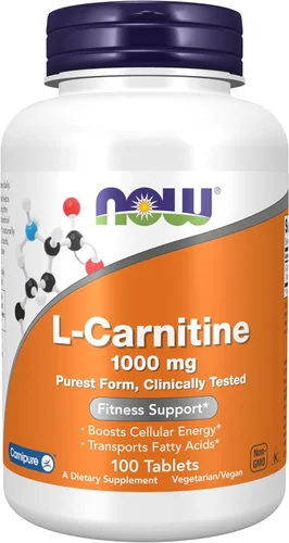 Forma más pura de L-carnitina de NOW Foods Ayuda a promover un cuerpo magro y musculoso Transporta ácidos grasos Un favorito de los culturistas y personas que hacen dieta