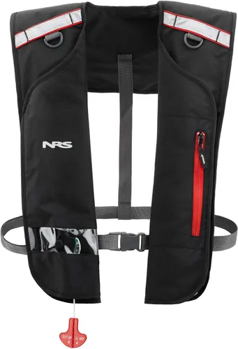 Este ligero PFD autoinflable proporciona 22.5 libras. de flotación Se pliega de forma compacta en una chaqueta de estilo de cuello de caballo de perfil bajo Se asegura con una hebilla de cintura cuando se desinfla La vejiga integrada se infla instantáneamente con la presión del gas CO2 cuando se sumerge en agua Bolsillo con cremallera con correa interna para llaves o un silbato