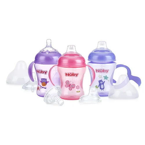 Biberones y Accesorios de la marca Nuby con pecho botella a taza 9 onzas, paquete de 3 y niña