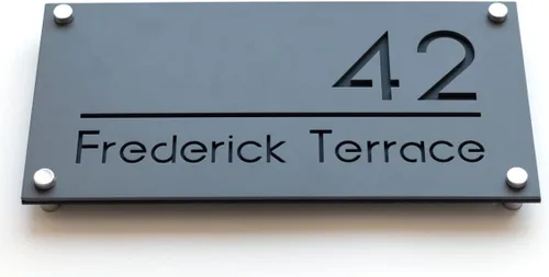 Material: acero inoxidable 304 (grosor de 0.079 pulgadas) + acrílico negro (grosor de 0.118 pulgadas) Adecuado para exteriores: impermeable y resistente a la intemperie; Tamaño: 11.8 x 5.9 in, 15.7 x 7.9 in, 19.7 x 9.8 in, 23.6 x 11.8 in. PERSONALIZA OTROS TAMAÑOS SOBRE LA CONFIRMACIÓN DEL DIBUJO: Después de su compra, le proporcionaremos dibujos en un plazo de 24 horas. Por favor, preste atención a las noticias para que podamos hacer y enviar lo antes posible. Si desea comprobar los dibujos personalizados antes de comprar, podemos hacer los dibujos para usted primero; Fácil de instalar, incluyendo accesorios de tornillo