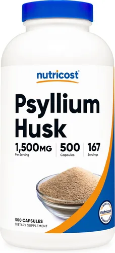 Nutricost Cáscara de psyllium 1500 mg por porción, 500 cápsulas, sin OMG y sin gluten