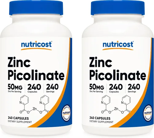 Nutricost Picolinato de Zinc 50 mg, 240 cápsulas vegetarianas (2 botellas) - Sin gluten y sin OMG