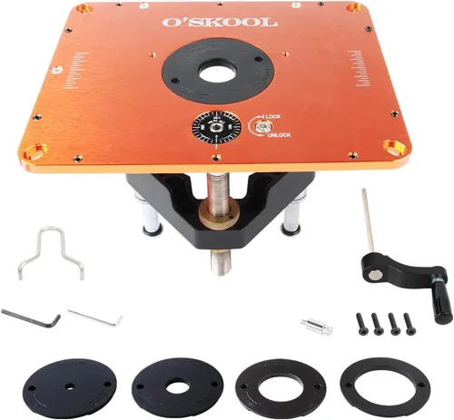 Este elevador de enrutador cuenta con un carro de 4.2 pulgadas de diámetro y es compatible con modelos populares de enrutador de 4.2 pulgadas como Triton/Tfbr001, Woodpeckers/1015420, Porter Cable 7518, Bora/Pm-6200, Mlcs/9564, lo que garantiza versatilidad y facilidad de uso. El tamaño de la placa de inserción es de 11-3/4 pulgadas x 9-1/4 pulgadas, lo que se adapta a la mayoría de las mesas de enrutador comerciales disponibles en el mercado Hecho de aluminio macizo mecanizado CNC de 4.2 pulgadas, la placa de inserción cuenta con una planitud excepcional. Incorpora 10 tornillos para ajustes de nivelación precisos. Además, la inclusión de 3 ruedas de leva de bloqueo elimina cualquier espacio en la apertura de la mesa del router, lo que garantiza una posición de montaje constante durante cada instalación Con un rango de ajuste de altura de 3 pulgadas, este elevador de enrutador te permite cambiar sin esfuerzo las brocas del enrutador sin la necesidad de quitar el enrutador del carro, ahorrándote tiempo y esfuerzo La altura de la broca del router por +- 1/16" que es el cambio de distancia de un hilo. Hay 32 líneas de escala de ángulo en el dial de microajuste. El ajuste de altura girando 1 escala (1/32 de un giro completo) es de 1/512 pulgadas. Además, el dispositivo de bloqueo de tornillo de altura evita cualquier movimiento mínimo causado por las vibraciones del enrutador, asegurando una profundidad de corte constante durante todo tu trabajo Con este elevador de enrutador se incluyen 5 anillos de inserción, que ofrecen un soporte de stock óptimo para el uso de varios tamaños de brocas de enrutador. Los tamaños de los anillos de inserción incluyen 3/8 pulgadas, 1 pulgada, 1-1/4 pulgadas (compatible con bujes de guía), 1-7/8 pulgadas y 2-5/8 pulgadas, para hacer frente a tus diversas necesidades de enrutamiento