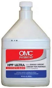 OMC SYSTEMATCHED HPF ULTRA SYNTHETIC BLEND LUBRICANTE / LUBRICANTE DE ENGRANAJES Servicio extendido, protección superior, botella de 32 onzas PARA TODOS LOS MOTORES DE 2 Y 4 TIEMPOS Y MOTORES DE INYECCIÓN DIRECTA REDUCTORES DE FRICCIÓN, AGENTES ANTIHUME, ADITIVOS DE PRESIÓN EXTREMA Promueve la vida útil y el rendimiento de la caja de engranajes