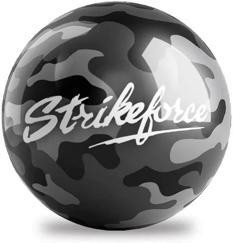 Sé el único en el centro de bolos con este diseño de camuflaje gris de la marca Strikeforce que va por los carriles. Esta bola de boliche única está aprobada para su uso durante la competencia USBC. Hecho de 100% poliéster. Ideal para bolos o exhibición.