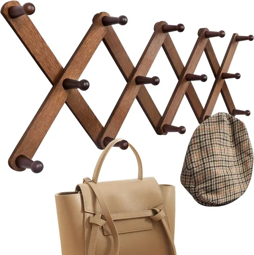 OROPY Perchero de pared de acordeón de madera, soporte de pared expandible con 14 clavijas, perchero expandible para sombreros para pared, en forma