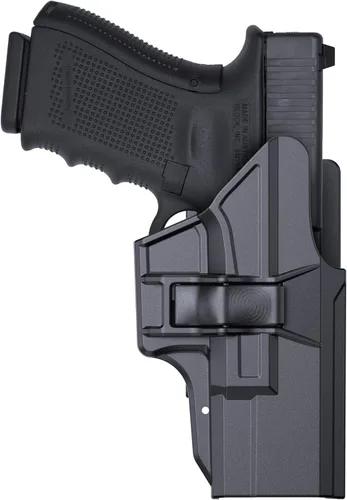 【Compatibilidad multimodelo (Listo para óptico)】 Compatible con Glock 19 Gen1-5, 19 MOS, 19X, 23 Gen1-4, 32, 44, 45, 45 MOS para diestros. Nota: No es compatible con Glock 23 Gen5. 【Diseño ajustable de extracción rápida de 60°】 Cuenta con un botón de liberación rápida para un posicionamiento preciso del pulgar, permitiendo un disparo suave. Ángulo ajustable de 60° (llave Allen incluida). 【Mecanismo de seguridad de bloqueo automático】 El sistema de bloqueo automático integrado asegura automáticamente su arma de fuego al volver a meterla en la funda, compatible con Glock 19/19X/23/32/45. 【Durabilidad de grado militar】 Construido con polímero ligero y de alta resistencia: resistente a impactos, calor y arañazos. Ideal para entrenamiento táctico, caza, uso militar, uso en el campo de tiro, aplicación de la ley, defensa personal y todos los escenarios de portación diaria/abierta. Ángulo de transporte personalizable: inclinación ajustable de 60° a través de la llave Allen incluida. Gira la base del cinturón para lograr tu posición de transporte preferida.