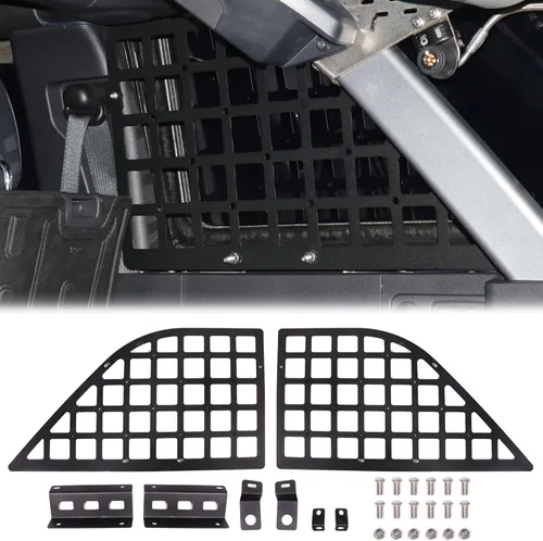 RERPRO - Paquete de 2 paneles Molle para ventana trasera para Ford Bronco 2021, 2022, 2023, accesorios interiores de 4 puertas Ajuste perfecto. Molle Panel es compatible con Ford Bronco de 4 puertas 2021 2022 2023. Precaución: ! No apto para Bronco 2 puertas. No apto para deportes de bronco. GRAN ORGANIZADOR El panel de carga Molle crea un gran espacio de almacenamiento para mantener tu coche ordenado y hace que sea más fácil encontrar tus pertenencias. Puedes organizar muchos artículos a través de correas o clips, como teléfonos celulares, linternas, llaves, lentes de sol, bolsas, herramientas, etc. CALIDAD El panel Molle trasero del maletero está hecho de acero refinado sólido con revestimiento de polvo negro antioxidante, antiarañazos, fuerte y duradero. Asegúrate de usarlo para organizar tu maletero trasero. Instalación sin taladrar. No hay necesidad de taladrar o modificar. Fácil de instalar el panel Molle con accesorios tornillos en los agujeros originales del automóvil. Proporciona video de instalación e instrucciones (idioma español no garantizado). LO QUE OBTIENES 2 paneles molle de ventana trasera para Ford Bronco de 4 puertas 2021, 2022, 2023. Si hay alguna pregunta, no dudes en decirnos!