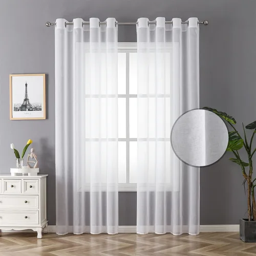 Grandekor Cortinas traslúcidas blancas filtrantes de luz de 96 pulgadas de largo, elegantes cortinas de gasa suave con ojales, 2 paneles con ojales,