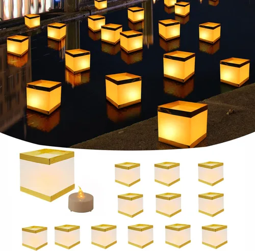 Ventaja: impresión hecha a mano con borde dorado de alta calidad que es mejor que sus compañeros, costuras ajustadas y parte inferior impermeable para que pueda flotar en el agua durante más de 6 horas. Tamaño de las linternas: 5.52 pies de largo x 5.52 pulgadas de ancho x 5.52 pulgadas de alto, cada linterna reutilizable viene con una vela LED sin llama, que se despliega para crear la decoración perfecta. Tiempo de combustión de la vela de más de 150 horas, reemplaza las pilas y se pueden reutilizar de nuevo. No solo puedes escribir palabras en la linterna conmemorativa como desees, sino que también puede servir como faroles decorativos para bodas, fiestas en la piscina, patio, mesa, meditación. Si necesitas usar linternas reutilizables muchas veces, la linterna de papel con luces es tu mejor opción. Cuando lo utilices en climas ventosos, se recomienda poner un poco de arena y piedras en la linterna no se volarán fácilmente. El paquete incluye: 12 linternas flotantes + 12 velas LED sin llama para satisfacer tu uso diario.