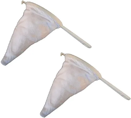 Paquete de 2 Colador de café español. Un "colador de cafe es un filtro de café de tela española, o un "colador de café". Tienen la distinción de ser una de las formas menos costosas de hacer café. Proporcionan una taza de café suave, rica y fuerte al estilo español, sin ningún café molido arenoso en el fondo de la taza. Mantén tus filtros de papel fuera de los vertederos utilizando este filtro de tela reutilizable muy duradero para tu café.