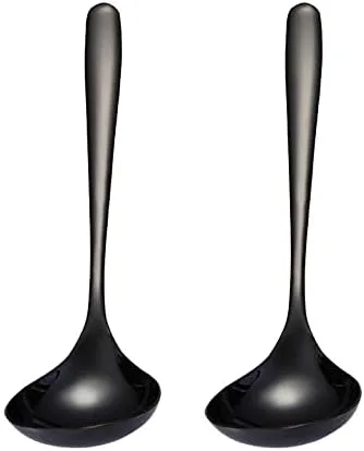 Paquete de 2 cucharones de sopa negros 304 de acero inoxidable para servir salsa de cocina