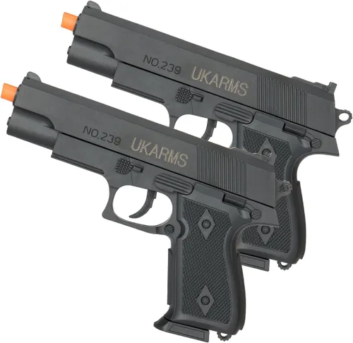 Especificaciones: OPERACIÓN: FUNCIONAMIENTO DE PRIMATERIAL: POLÍMERO VELOCIDAD DEL BOZCO: 110 FPS (W/0.12G BBS) LONGITUD: 7" PULGADAS COLOR: NEGRO EL PAQUETE INCLUYE: 2X PISTOLA DE MUELLE