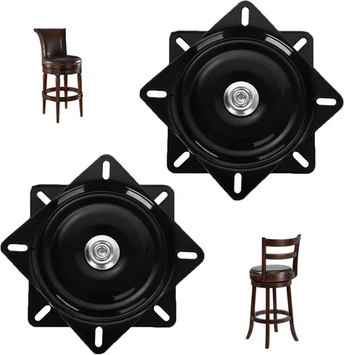 Especificaciones: Tamaño: 6 pulgadas / 0.059 in de grosor / medias cuentas Función: rotación libre de 360 grados Material: hierro. Tratamiento superficial: electroforesis negro Rodamientos de bolas: medias cuentas Ideal para uso de reemplazo en muchos taburetes, como sillas de comedor, mesa, TV, sofá, etc. Características: ---El patrón de agujeros se adapta a la mayoría ---Taburete de bar fuerte y duradero placa giratoria ---Rotación de 360 grados en rodamientos de bolas prelubricados pista redonda completa ---Ideal para uso de reemplazo en muchos taburetes, taburetes de bar y sillas. Nota: Los giros no están destinados a girar libremente cuando se manejan individualmente y pueden ser difíciles de girar antes de la instalación. Esto es normal para evitar una rotación demasiado suelta cuando está en uso.