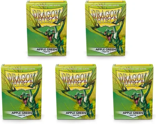 Parte delantera transparente y parte trasera verde manzana. Lujo metálico en la palma de tu mano. Las mangas mate son nuestra popular línea de Dragon Shield texturizados con un manejo superior. Una mezcla perfecta de durabilidad y capacidad de aleación. Diseñado para su uso con Magic the Gathering, Pokémon y otros juegos de cartas.