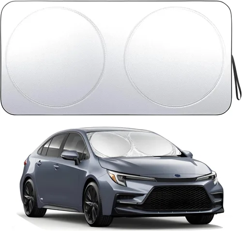 Tamaños estándar universales: El parasol está fabricado con material de alta calidad, duradero de 240T de protector de pantalla con bloqueo solar, diseñado para un rendimiento duradero. Medidas del borde de la tela: longitud = 59", ancho = 31.5", diámetro del anillo = 27.6". Se adapta a sedanes, SUV, camiones y autos grandes. Por favor, ten en cuenta: Mide tu parabrisas primero para asegurarte de que obtienes el tamaño correcto Nuestra protección solar para parabrisas también es compatible con camiones como el Toyota C-HR Yaris Corolla, Honda Fit HR-V, Nissan Juke, Hyundai Kona Veloster, Ford Mustang, Chevrolet Cruze Sonic, BMW X1, Audi Q3, Jeep Renegade, o modelos similares. Mantente fresco con la tecnología reflectante mejorada: nuestro revestimiento reflectante avanzado supera la reflexión tradicional de plata al incorporar una capa adicional, logrando una tasa de reflexión de la luz solar un 60% más alta en comparación con los productos convencionales. El innovador diseño de doble parasol, combinado con la Tecnología Reflejante Mejorada, ofrece la máxima cobertura y una protección UV y solar superior, manteniendo a usted y sus pasajeros más frescos y cómodos. Protege el interior de tu coche: nuestro parasol para parabrisas delantero protege el interior de tu automóvil al proteger el salpicadero, los asientos y los dispositivos electrónicos de los dañinos rayos UV. Esto ayuda a prevenir la decoloración, agrietamiento y el desarrollo de olores desagradables causados por la exposición prolongada al sol. Fácil de usar y almacenar: el parasol es fácil de abrir, instalar, plegar y almacenar en su bolsa compacta. Cabe cómodamente en la guantera de tu auto o bolsillo de la puerta, ayudando a mantener tu coche ordenado y organizado. Ahorra tiempo y esfuerzo mientras disfrutas de una comodidad y protección inigualables. Servicio al cliente de calidad: Nuestro equipo de servicio dedicado siempre está listo para ayudar con cualquier consulta. Priorizamos la satisfacción del cliente proporcionando soluciones oportunas y un servicio personalizado.