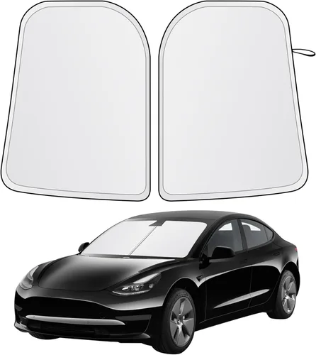 Ajuste personalizado para parabrisas Tesla Model 3 y modelo Y: diseñado con precisión para Tesla Model 3 y Model Y, este parasol cuadrado para parabrisas garantiza una cobertura máxima de (37 pulgadas de largo x 28 pulgadas de ancho), bloqueando eficazmente la luz solar directa, reduciendo el deslumbramiento y manteniendo una temperatura de cabina más fresca. Material de protección térmica reflectante 240T de alta calidad: actualizado con tela reflectante 240T de alta densidad, este parasol Tesla refleja la luz solar intensa, el calor y los dañinos rayos UV, ayudando a reducir significativamente la acumulación de calor interior incluso en climas extremos. Protección interior avanzada para cabina Tesla: protege tu tablero, pantalla táctil, asientos y volante de daños por el sol, decoloración, grietas y sobrecalentamiento. Diseñado para prolongar la vida útil del interior premium de tu Tesla. Diseño plegable, ligero y de fácil almacenamiento: construcción flexible y duradera que permite un plegado rápido en segundos. Viene con una bolsa de almacenamiento compacta para un almacenamiento conveniente en la guantera, bolsillo de la puerta o maletero de tu Tesla. Comodidad de conducción mejorada y comodidad diaria: mantiene tu Tesla notablemente más fresco, por lo que puedes entrar en una cabina más cómoda después de estacionar. Un accesorio imprescindible para parasol Tesla para el uso diario, protección de verano y comodidad a largo plazo.
