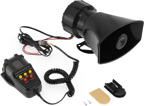 5 modos de sonido: cuenta con 5 sonidos de alarma diferentes, incluyendo sirena, alarma, grito, fuego y gemido para satisfacer diversas necesidades de advertencia. Sistema PA con micrófono: equipado con micrófono para funcionar como un sistema de megafonía, lo que te permite transmitir tu voz claramente. Resistente al agua y duradera: carcasa de alta resistencia con diseño impermeable y resistente a la corrosión, rendimiento estable para un uso a largo plazo. Amplia compatibilidad: fuente de alimentación de 100 W y 12 V CC, adecuada para la mayoría de automóviles, camiones, motocicletas, ciclomotores y otros vehículos. 【Fácil instalación】Viene con soporte de montaje, tornillos y accesorios necesarios para una instalación simple y rápida.