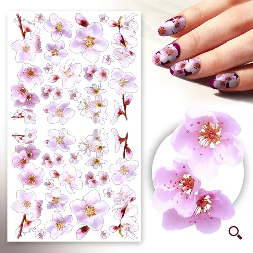 Pegatinas para uñas (5 hojas) FLONZNAIL Cherry Sakura Real Photo Flowers Garden Vintage Style