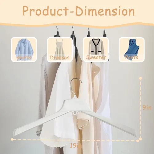 Diseño simplista: esta es solo una caja de perchas extra grandes que funciona bien para ropa de talla grande. Roperos para guardar ropa. Talla extra: XL, ropa XXL, camisas, abrigos, vestidos. Fabricadas con material reciclado, nuestras perchas XXL sirven como perchas de ropa extra grandes para camisa o abrigo de hombre Reversible. Nuestras perchas de gran tamaño también funcionan para vestidos o faldas de mujer. Gancho giratorio cromado que gira 360 grados. Diseñado para la vida cotidiana.